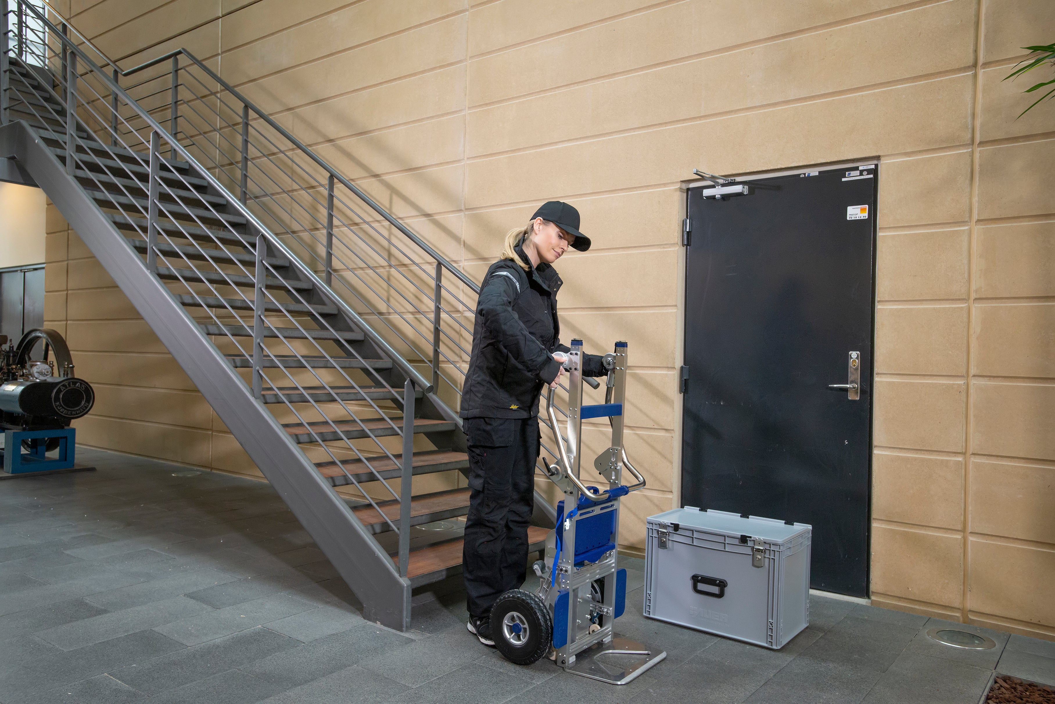 "Aiemmin tarvitsimme aina kaksi miestä käsittelemään tavallista porraskärryä, mutta nyt yksi ihminen selviytyy samastatyöstä ongelmitta."